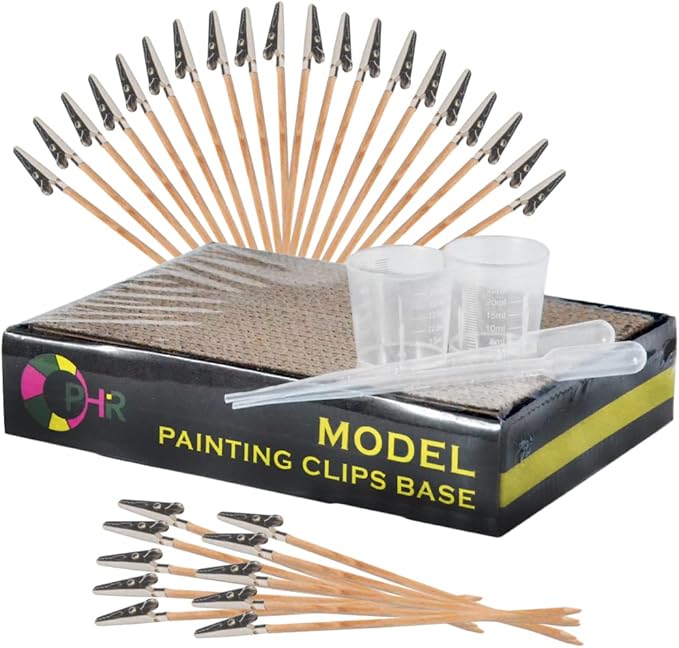プラモデル等のホビーやネイルアートでのエアブラシやボンド付、塗装の乾燥工程では必須アイテム塗装クリップ、塗装ベース、スポイト、塗料計量カップです。
