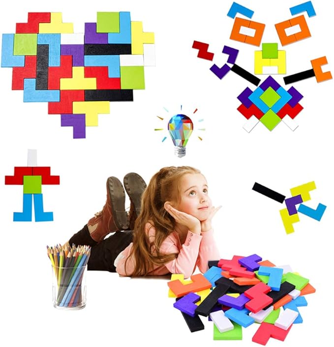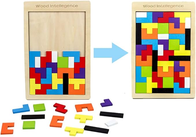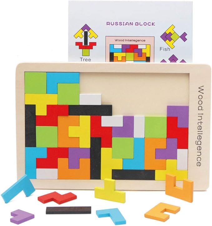 木製ジグソーパズル カラフル40ピース 図形作りや型はめに挑戦 ロシアンブロック 温かみある木のおもちゃ タングラム 発想力 思考判断力 図形認識力を育む カラーパズル ウッドピースパズル 教育玩具 FMTTTRIS40