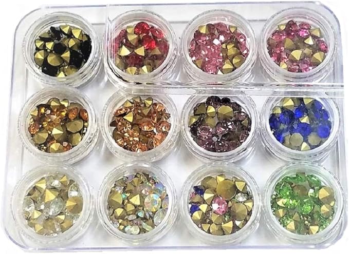 Vカットストーン 12色ミックス 【サイズ】約2mm ~ 6mmが混同 ※若干の誤差、内容量にばらつきがあります。 ネイルアート、ハンドメイドアクセサリー、DIY等にお使いいただける便利な12色 / サイズグラデーション のアクリルVカットストーンのセット商品です。 輸送時、クリア収納ケースに、ひび割れ等発生する場合がございます。また仕入れ時期により、内容色が多少異なる場合がございます。ご了承の上、お買い求め下さい。