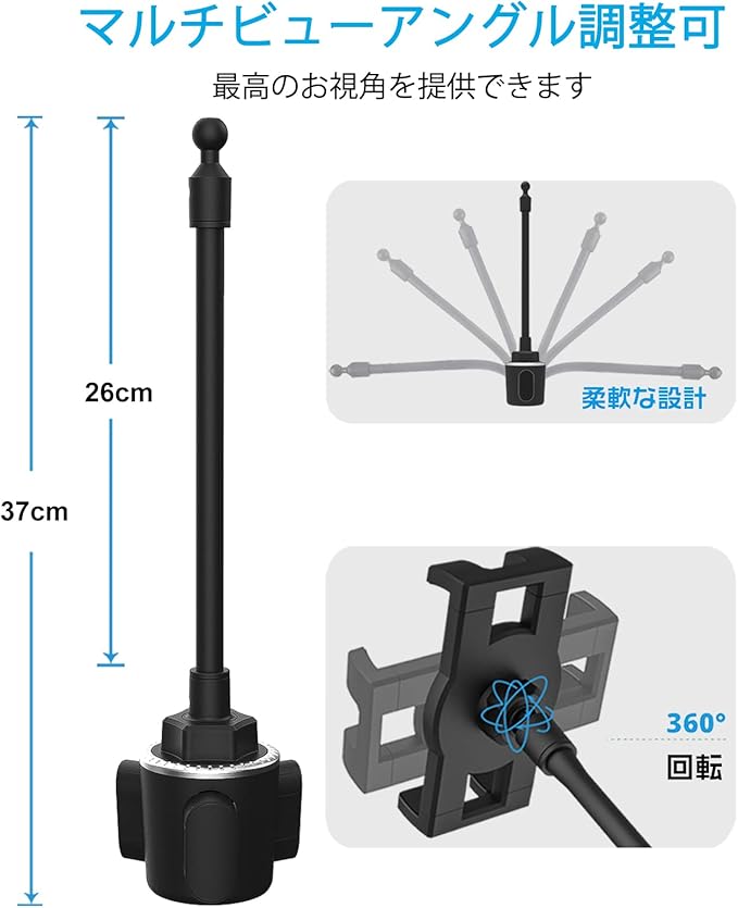 Charchendo 車載ホルダー タブレット カップホルダー グースネック iPadスタンド ドリンクホルダー タブレットスタンド 携帯マウント 取り付け簡単 360度回転 自由調節 日本語説明書付き タブレットとスマートフォン4~13インチ全機種対応 iPad Pro 9.7 11 12.9 インチAir Mini/iPhone/Galaxy Tab/Fire
