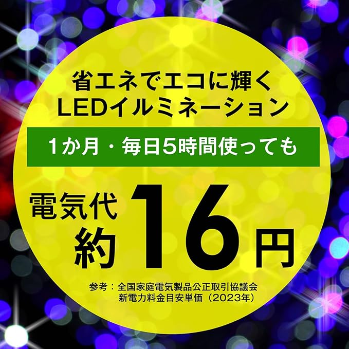 【 日本メーカーが責任を持って対応いたします 】日本のメーカー、AD&C TORONICが手掛ける、クリスマスやハロウィンなど、イベントを彩るLEDタイプのイルミネーションブランド「テルノン」です。【 PSE認証商品とエコ設計 】このLEDイルミネーションライトは電気用品安全法(PSE)の適合商品です。過電圧・過電流・短絡などに対応する多重保護機能を備えた安全設計です。また、省エネ仕様で消費電力はわずか3.5W。1日5時間の使用でも1ヶ月の電気料金は約16円と、コストパフォーマンスに優れたライトです。