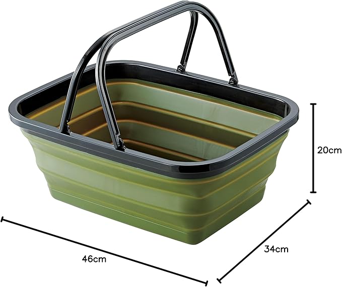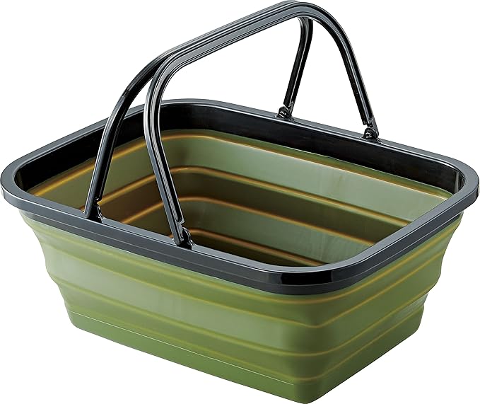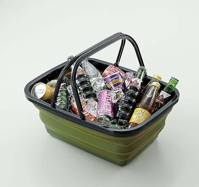 [特徴]薄くたためてたっぷり入る折りたたみ式バスケット。飲み物の冷却や洗い物に。