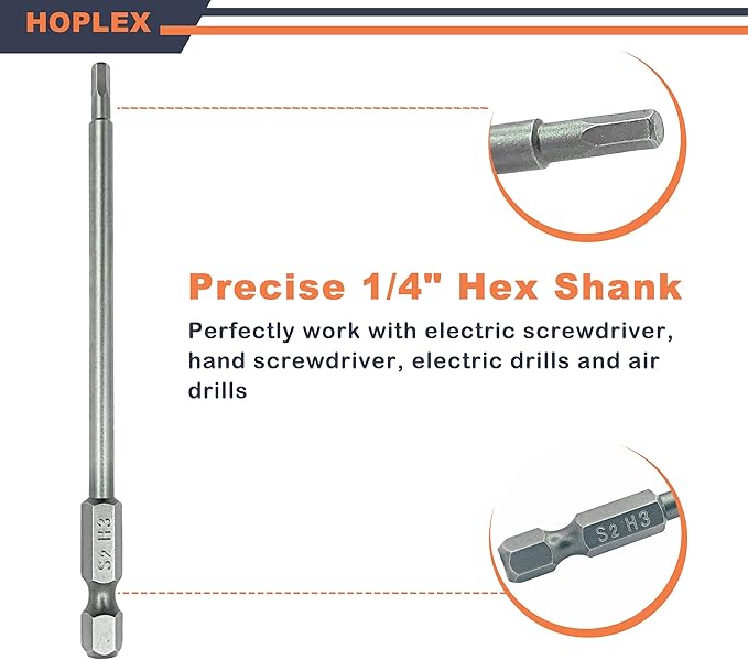 HOPLEX 1.5 2.0 2.5 3.0mm 六角ビットセット 1/4インチ 六角シャンク スクリュードライバービット電動スクリューガン/パワードリル用