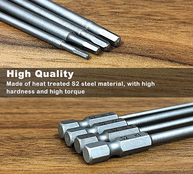 【高品質素材】熱処理された高品質のソリッドS2スチール製の六角キーセットは、高いねじれと適切な硬度を確保し、ビットが壊れたり摩耗したりするのを防ぎます。