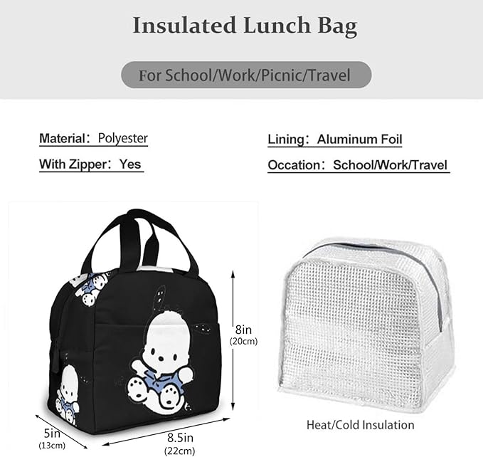ぽちゃっこ 保冷 がま口 ランチバッグ ブラック お弁当箱 保温 保冷バッグ ファスナー付き コンパクト お弁当袋 ソフトクーラーバッグ トート・エコバッグ