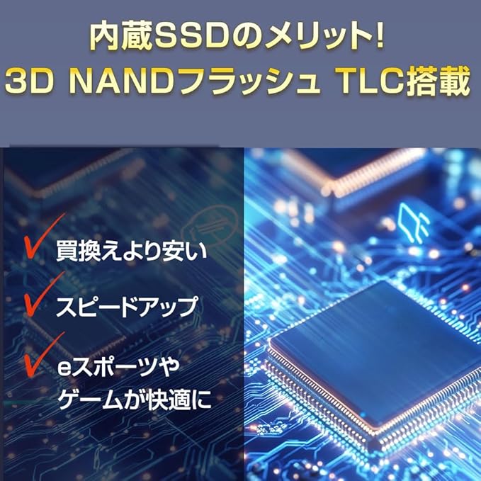 【HDDからスピードアップ】安価ながら読取り550MB/s、書込み450MBという転送速度を実現しています。一般的にSSDとHDDを搭載したパソコンの起動スピードを比較するとSSDが3倍程度早くなると言われています。パソコンの買い替えは高額なので諦めているという方も、SSDの入れ替えであれば驚くほど安価で済みます。