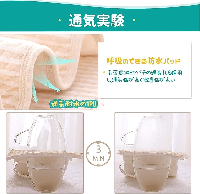 【子供防水シーツ しっかり防水&快適な睡眠を約束する肌触り】赤ちゃんの肌にやさしいオーガニックコットンを使用したナチュラルなおねしょシーツ。ベビー用敷きパッド、女性用ケアパッド、介護用ケアパッドやペットパッドなどを使用することができます。