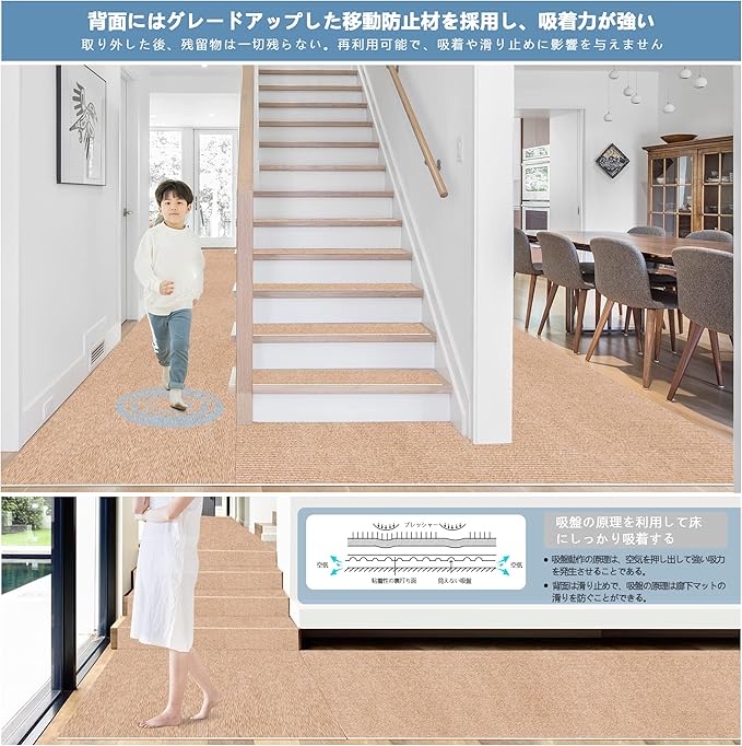【Amazon 限定ブランド】廊下敷き マット カーペットラグ ラグマットカーペット 洗える AOHDM 階段マット約300 60cm 滑り止め キッチンマット ベージュ 玄関マット 4mm吸着マット めマット ロングマットすべり止め 吸着カーペット階段用ステップマット 滑り止め マット