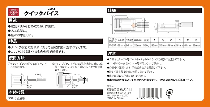 アルミクイックバイス 口幅68mm V-65A