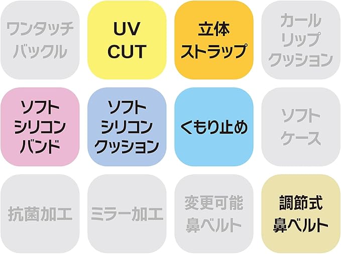 くもり止め加工、UVカット加工。