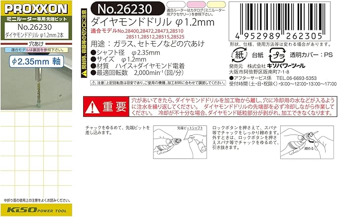 プロクソン(PROXXON) ダイヤモンドドリル2本 【ドリル径1.2mm 軸径2.35mm】 No.26230