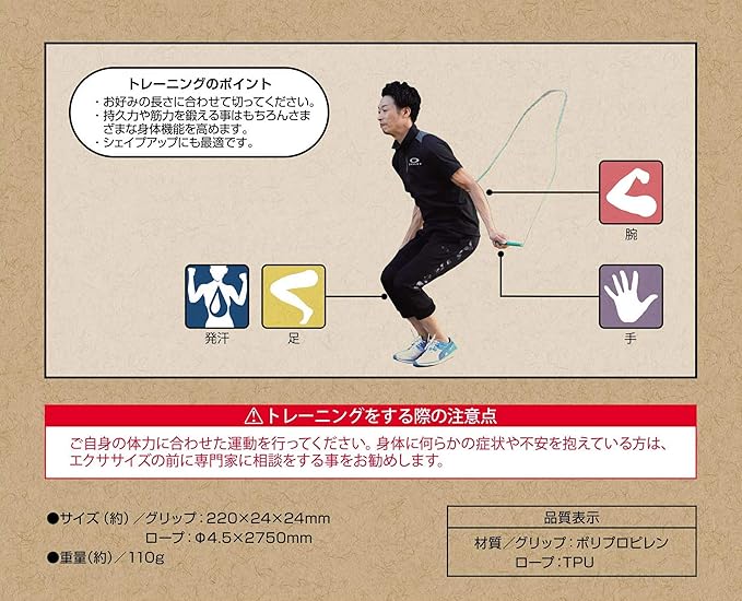 製品サイズ:(約)グリップ/220 24 24mm、ロープ/φ4.5 2750mm