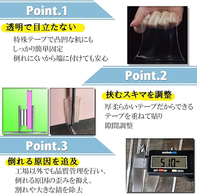 【安心】小さいけど特殊強力テープで楽々机へ固定、品質を定量的に計測しました。