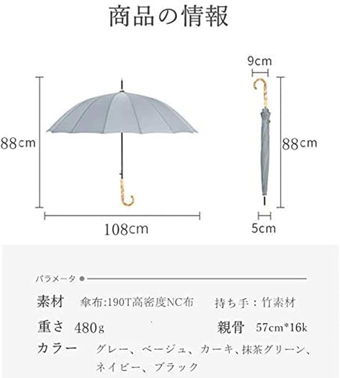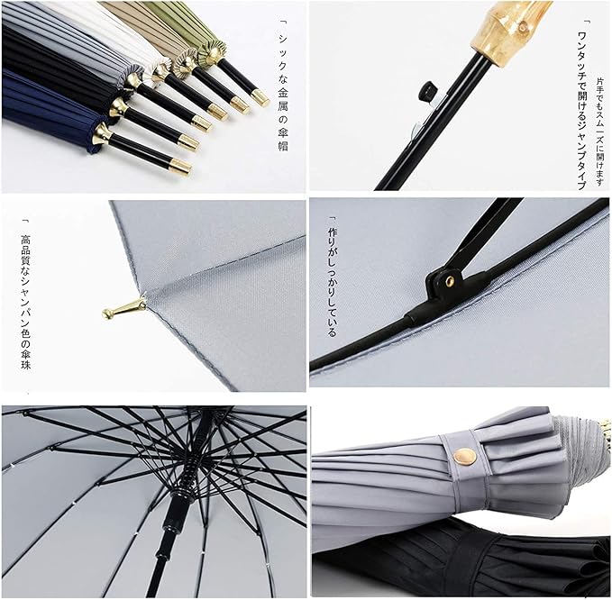 傘 長傘 16本骨 天然 竹 持ち手 ワンタッチ ジャンプ式 大きい 丈夫 耐風 軽量 メンズ レディース 晴雨兼用