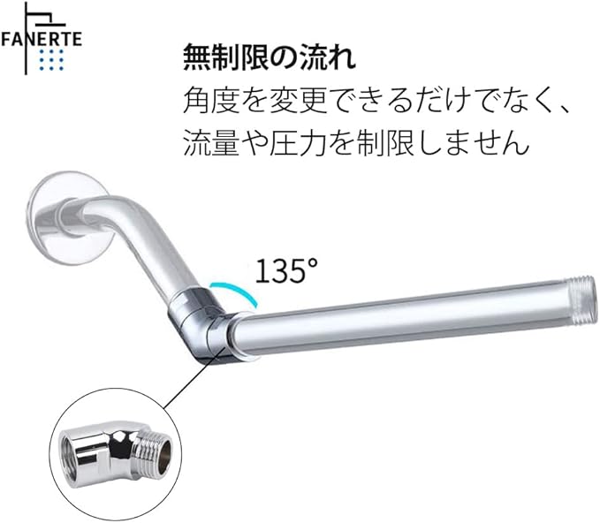 汎用性: G1/2インチの雌ねじと雄ねじを備え、ほとんどの標準的なシャワーシステム、シャワーアーム、シャワーヘッドに対応
