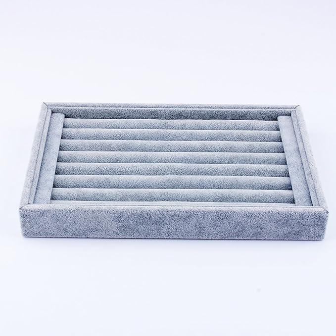 ジュエリー トレイ ディスプレイ 収納ケース 保管 ジュエリーアクセサリー 指輪 リング イヤリング ジュエリー カフスボタンに適応 23cm*15cm グレー 指輪 トレイ