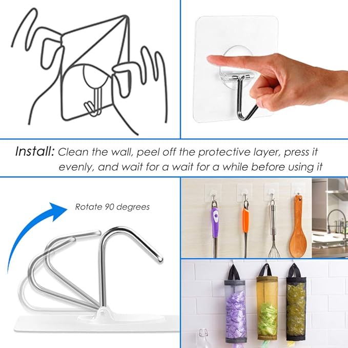 木材、ガラス、すりガラス、ガラスグリッド、セラミックタイル、金属表面、またはその他の硬い平らな表面に広く適用される、4本のプラスチック製スティックフック、錆びにくく、頑丈で耐久性があります。