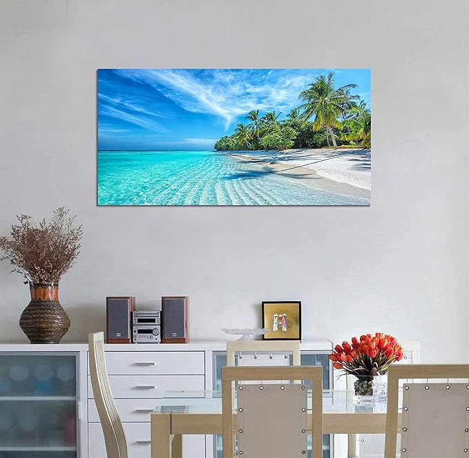 海の絵 アートパネル ヤシ 絵画 海 空 風景画 壁掛け 部屋飾り リビングルーム 壁絵 寝室壁アート 室内装飾アートボードの部屋装飾木枠付きの完成品(40x80cm)