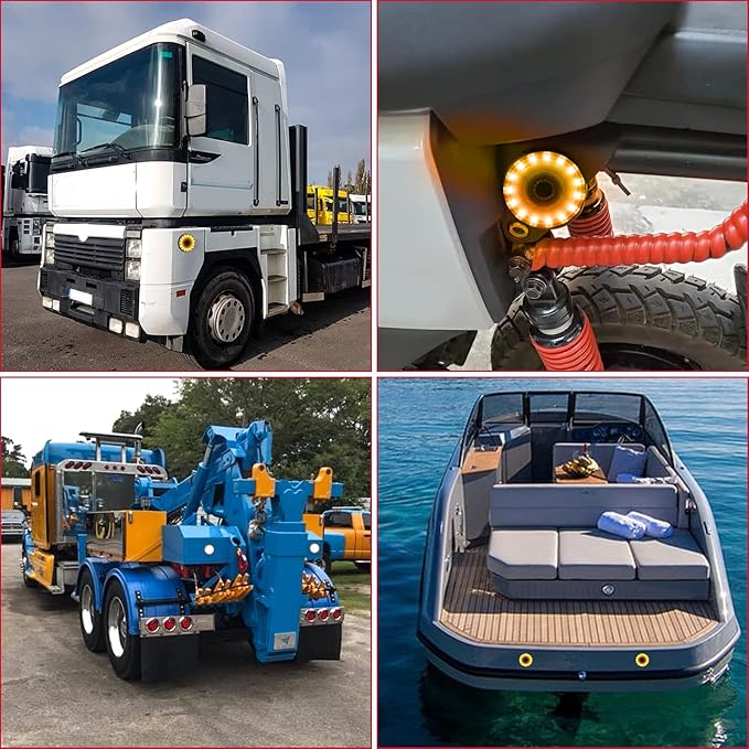 超高輝度: この LED 丸型トラックサイドライト DC12V、合計 24 個の LED チップ (外側 16SMD、内側 8 SMD)。 光の色:外側は赤色光、内側は黄色光です