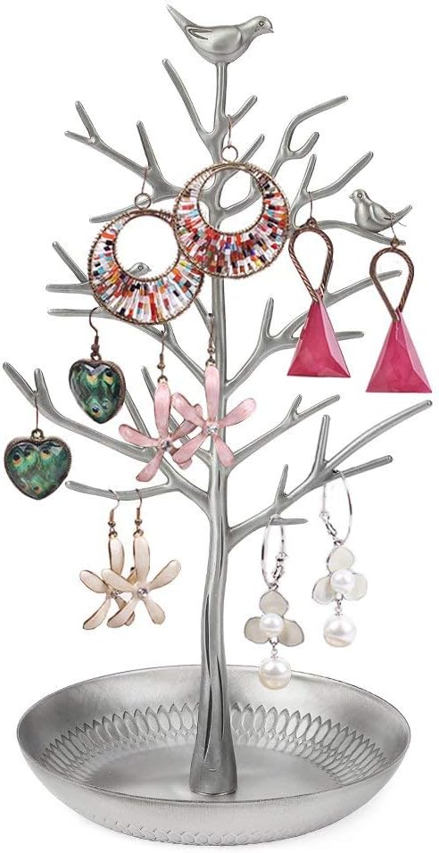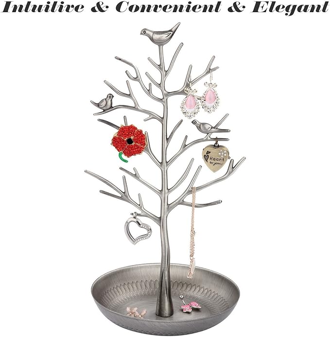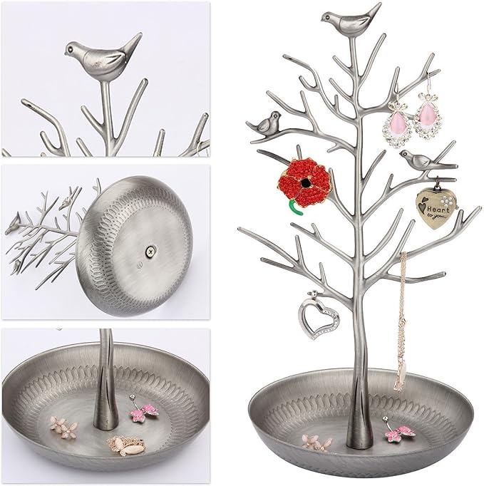 ジュエリースタンド ディスプレイスタンド ジュエリーラック オーガナイザー 小物入れ アンティーク風 ジュエリースタンド イヤリング ネックレス アンティーク 飾り棚 インテリア キャンディ入れ 小鳥ツリー (シルバー)