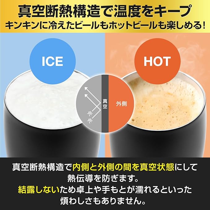 【 おしゃれなデザイン 】 お楽しみのビールタイムをさらに豊かにするため、おしゃれで飽きの来ないスタイリッシュなデザイン。細くて背が高めに設計され、底面から飲み口に向けて広がった形状で、ビールを注いだ際にきめ細かい泡が立ちやすいのが特徴で、ビールの美味しさを最大限に引き立てます。飲み口は広く、ビールの風味を余すことなく楽しむことができます。