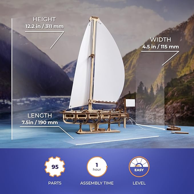Ugears オーシャンビューティーヨット 70193 木製パズル 工作 模型 接着剤工具不要 大人