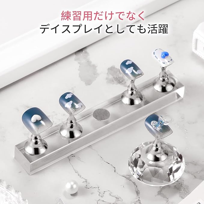 練習用・簡易展示用:ネイルチップの練習用としてはもちろん、完成品の簡易展示にも使用可能なネイルアートスタンド。撮影や店内ディスプレイなど、日常的なシーンで活用できます