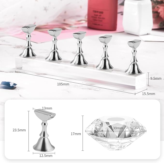 Annhua ネイルチップスタンド 磁気 ネイルスタンド 5本セット ジェルネイル チップスタンド アクリル製ネイル台座 ネイルホルダー マニキュア工具 ネイル練習 展示用 シルバー