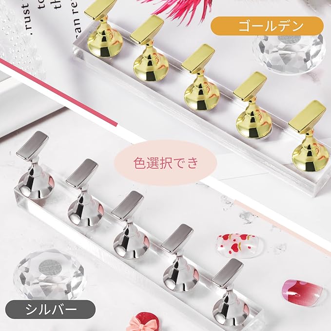 マグネット式ネイル台座:磁力によりネイルチップスタンドを固定し、作業時の安定感をサポートするネイル台座です。チップの装着やアート作業を比較的スムーズに行え、セルフネイルや練習用として使いやすい設計です。※強い衝撃や大きな揺れがある場合はズレることがあります