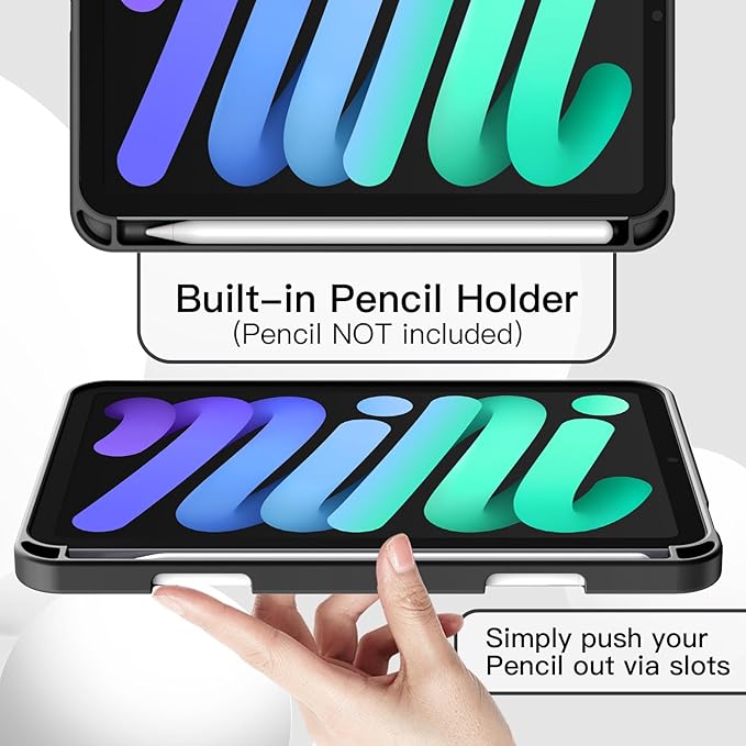 JETech iPad mini (A17 Pro 2024 モデル、第7世代) / mini6 ケース (8.3インチ、2021モデル、第6世代)用 Pencilホルダー付き ソフトTPUバック スリム保護カバー オートウェイクアップ/スリープ機能付き (ブラック)
