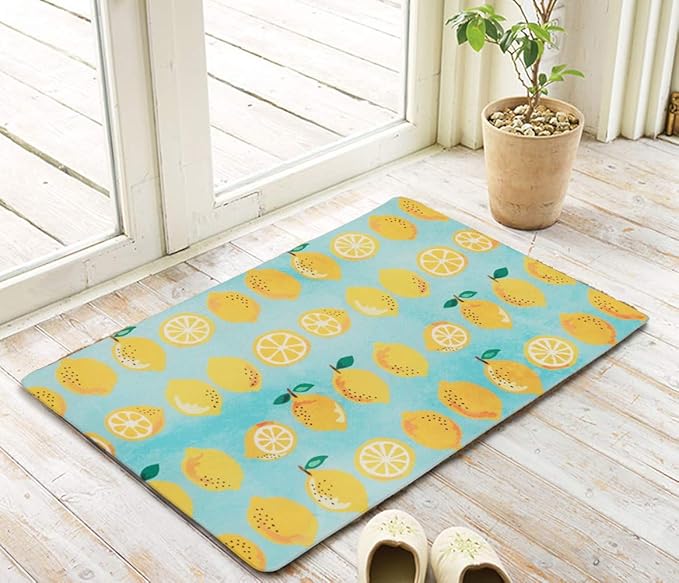 アーリエ(Arie) キッチンマット ブルー 50 80cm 汚れに強い お手入れ簡単 PVC フレッシュレモン