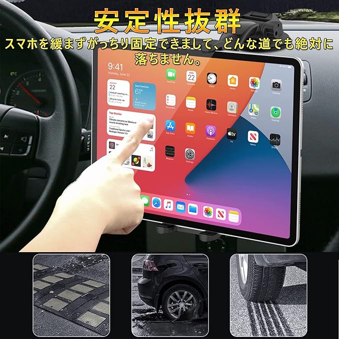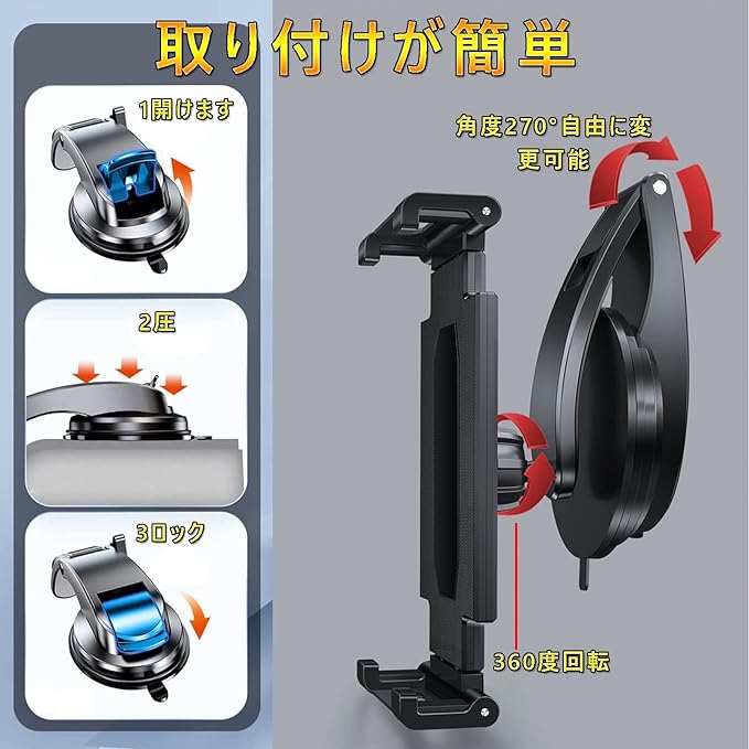 Elnicec 車載 吸盤式タブレットホルダー 【2026最新改良型】ipad スマホホルダー 車 ダッシュボード用 超強力粘着ゲル+真空吸盤 360度回転 自由調節 伸縮アーム 取り付け簡単 5.5~11インチ全機種対応 日本語説明書付き