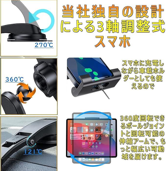 【大人気のスマホ&タブレット兼用車載ホルダー 】Elnicec 会社は「より早く、より安全な運転を体験しよう」という理念を持ちながら、心から認められる製品を作り出し続けています。お客様の意見を聞き、市販の1軸車 スマホスタンドとでは、思い通りの角度に調整できず、安全運転につながる可能性がある、当社独自の設計による3軸調整式スマホ 車用 ホルダーは調整範囲がより広く、運転中の全然視野の妨げにならない!快適で安全な視界を確保することが可能で、安心した運転をサポートします。