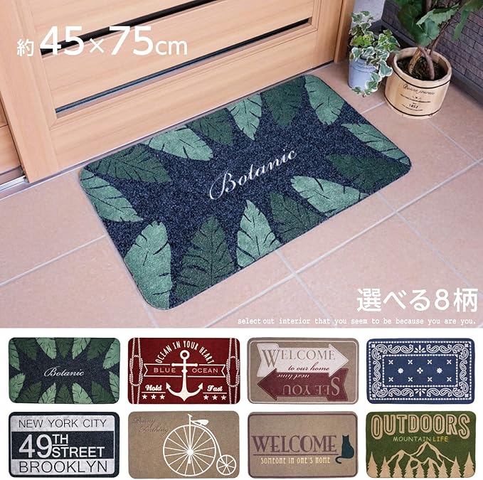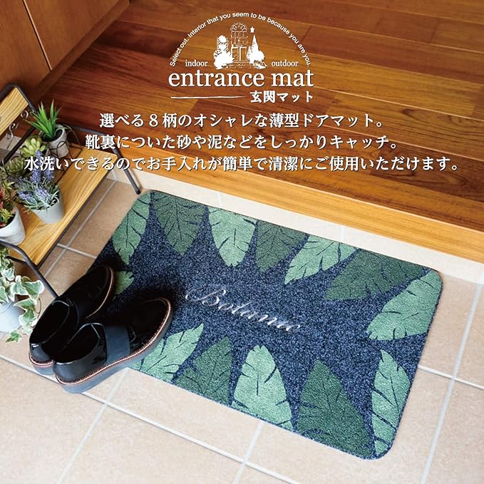 カキウチ 玄関マット グリーン 縦45 横75cm エントランス マット ボタニック ドアマット