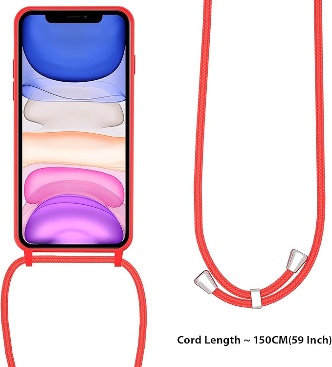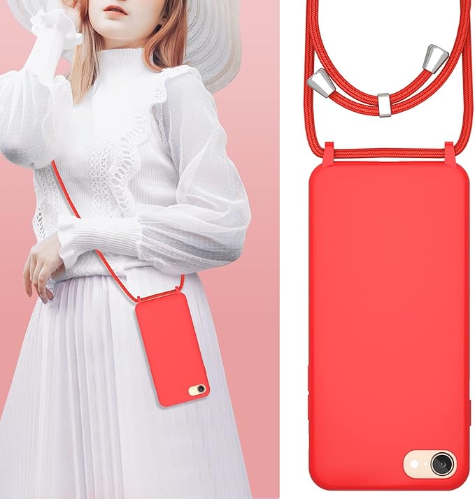 UEEBAI 対応 iPhone SE3 5G/iPhone 7/iPhone 8/iPhone SE2 用の ケース シリコン 調節可能なケース 肩がけ 首掛け 紐付き ストラップホール付き 薄型 軽量 耐衝撃 カバ- 落下防止 紛失防止 ショルダー バンパー - レッド