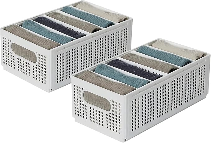 yazi 衣装ケース 仕切り 折り畳み 衣類収納ボックス プラスチック 6仕切り 大容量2個セット tシャツ・ズボン・下着 衣類仕切り収納ケース