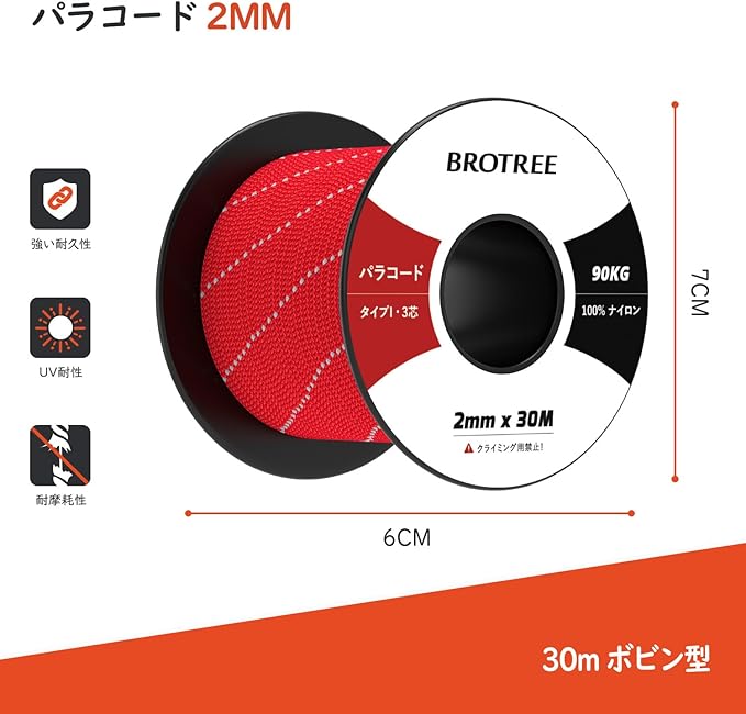 ご注意: ロッククライミング&プロ登山用ロープとして使用できない。体重を支えることができません。予めご了承ください。