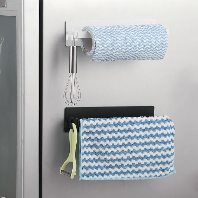 ONEDONE マグネット キッチンペーパーホルダー 台所 冷蔵庫 浴室 壁面収納 磁気ホルダー タオル掛け ラック (黑)