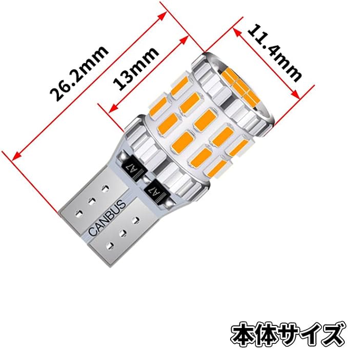 T10 超高輝度 LEDバルブ 30LED 無極性 12V 24V 兼用 バイクからトラックまで 明るい ポジション ナンバー灯 室内灯 ウインカー キャンセラー内蔵 2個セット アンバー