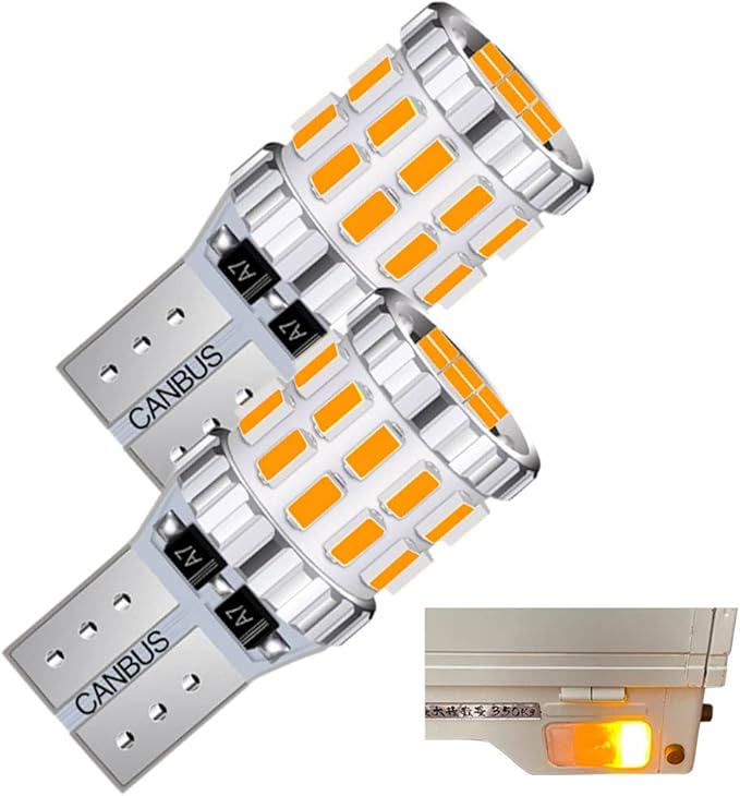とても明るい超高輝度LEDをトップに6個、サイドに24個、合計30個配置したT10LEDバルブ2個セット、光色アンバーです。