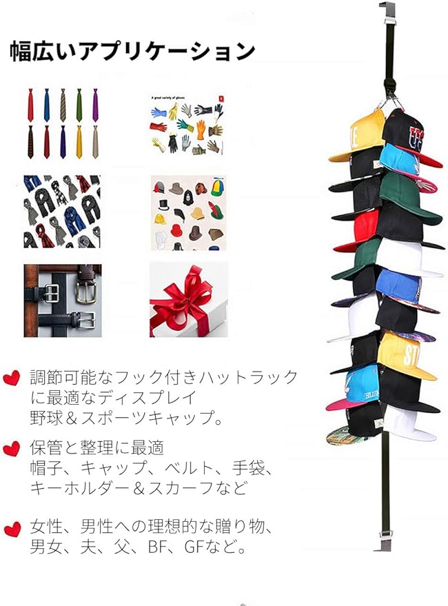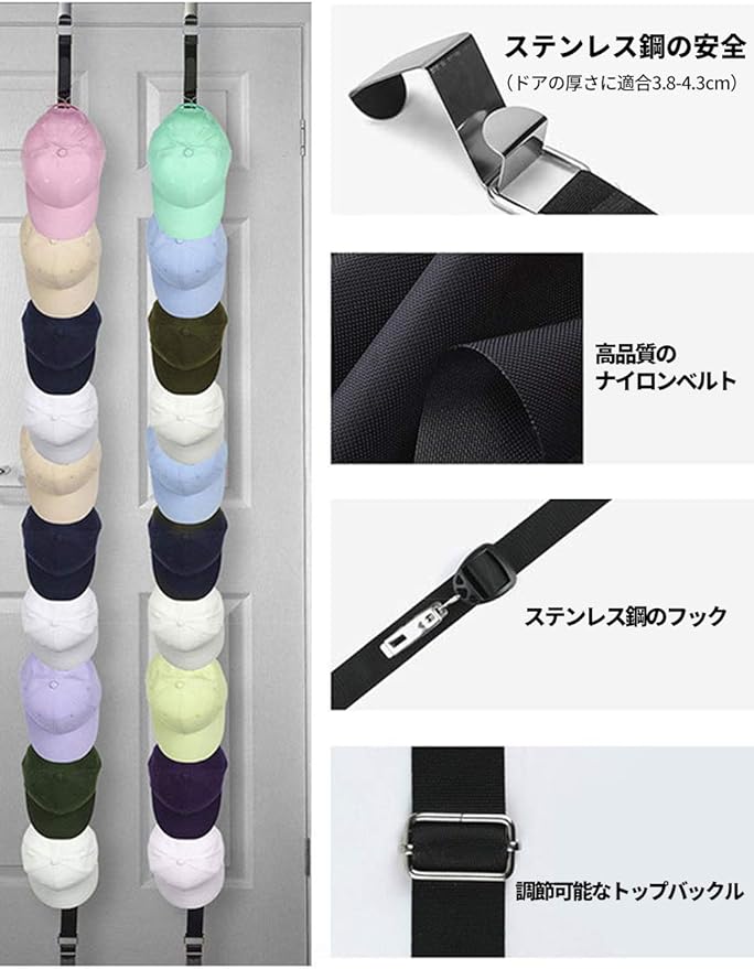 帽子 収納 キャップラック 帽子ディスプレイ 収納 帽子 ラック 帽子かけ 帽子ハンガー 帽子掛け ドアの後ろのコートフックストラップハットラック壁掛けコートフックコートフックハット格納式ラック