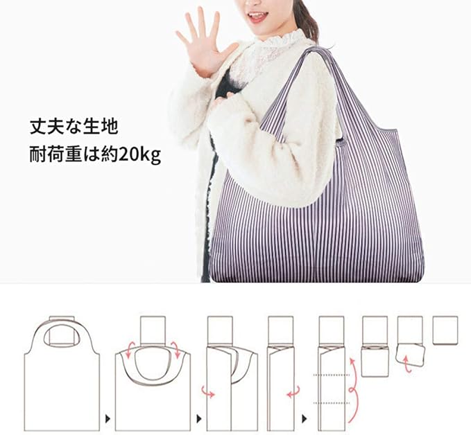 バッグサイズ:52*66 センチ、折りたたみサイズは2*10*14 センチで、重さは20 キロまで耐えられます。丈夫で長持ちします。