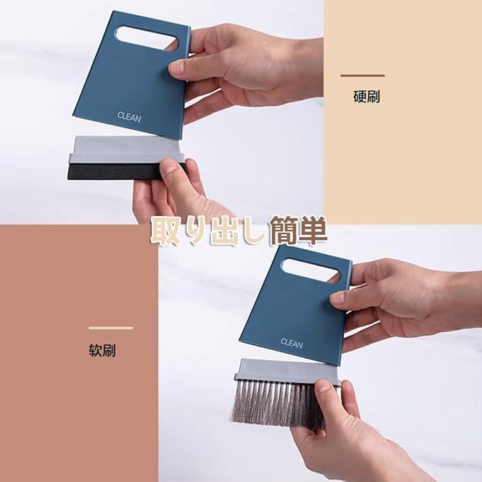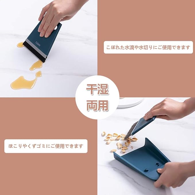 ほうき 卓上ちりとり セット 掃除セット ミニほうき 塵埃&水掃除乾湿両用 掃除用品 プラスチック 携帯便利 収納便利 清掃用品 しっかり 多機能 掃除道具 デスク 箒 卓上 室内 食卓 キッチン パソコン周り最適 (ネイビー)