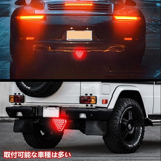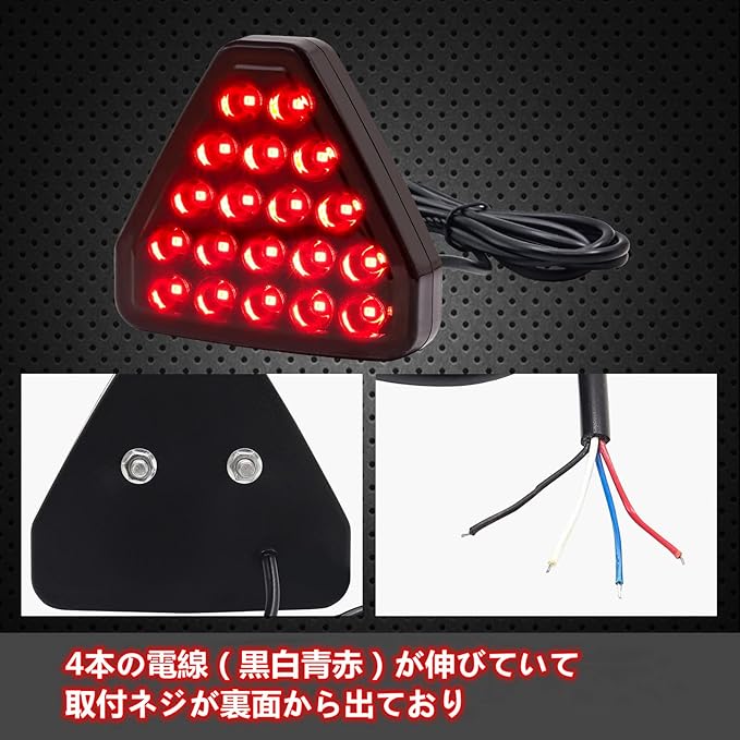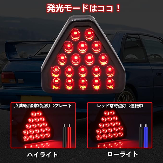 バックフォグ led リアフォグ ストップランプ ブレーキランプ 車用 テールランプ 汎用 12V 点滅 19発仕様 三角 尾灯 レッド 1個
