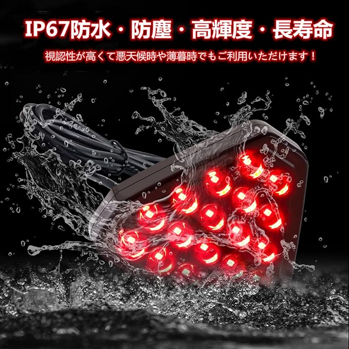 【省エネ・長寿命】高いコストパフォーマンスと高い防水性能を兼ね備え、省エネ・長寿命のLEDブレーキランプです。雨の日でもしっかりとしたブレーキランプの光を発します。