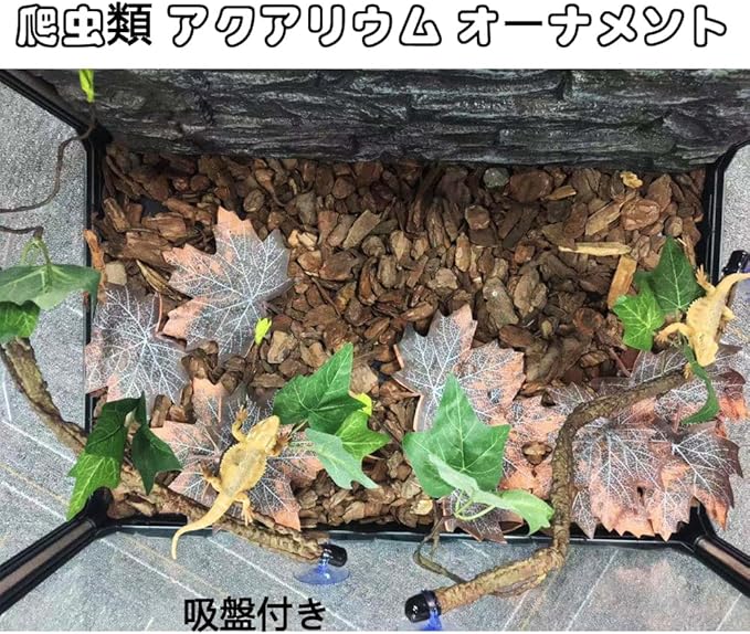 【吸盤付き】吸盤が付いているので、飼育ケージのガラスに簡単に取り付けることができます。爬虫類や両生類の飼育ケースを彩る装飾木になります。自然な雰囲気を演出し、ペットに休息用スペース、隠れ家スペースを提供します。