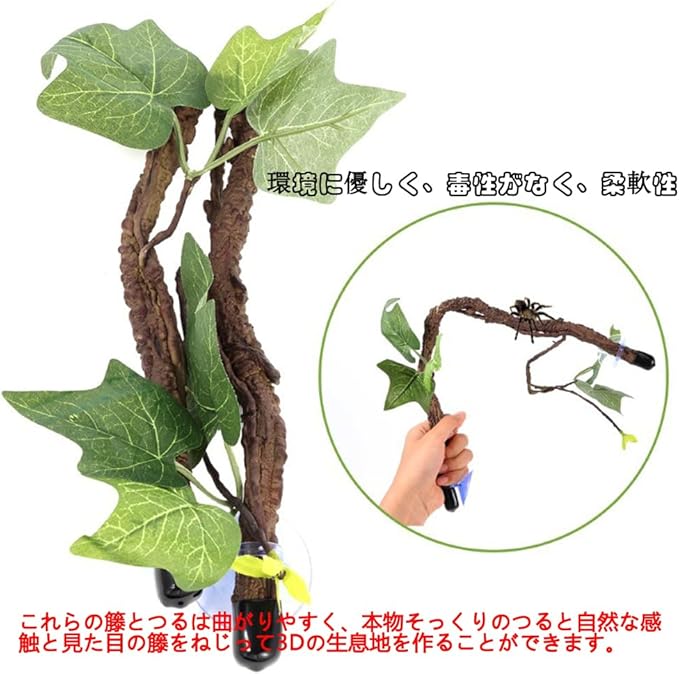 Hitasi 爬虫類 登り藤 登山枝 装飾 人工藤 柔軟性 吸盤付き 爬虫類のつる 水族館 水槽 2個セット 装飾木 装飾登り木 フェイクグリーン 水槽 内装 造園 休憩 隠れ家 水陸両用 両生類 魚類 趣味
