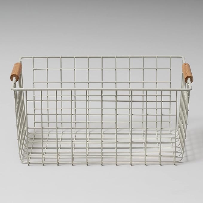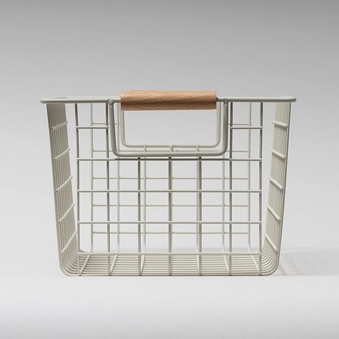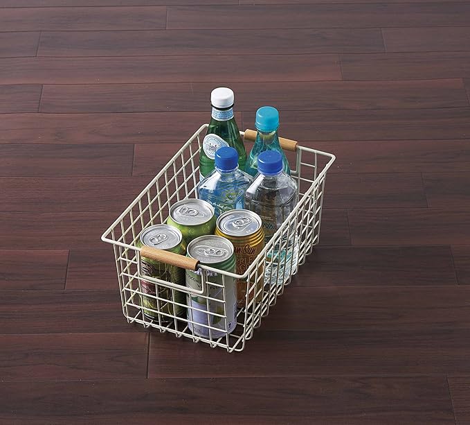 パール金属 バスケット サンドホワイト Sサイズ ワイヤーバスケット 木柄 N-8318