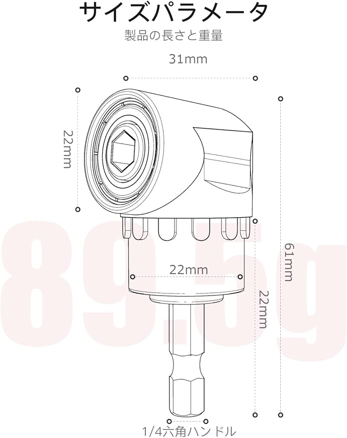 適用機種:壁際や、狭い場所に必要な工具です。ほぼのドライバー、電気ドリル、インパクトドライバーなどのツールに適しています。ドライバーとドリルビットを1/4インチの六角形の磁気ドリルソケットに挿入して使用すると、磁気吸引力によってそれらが落下を防ぎます(高トルクの電動ドリルはお勧めしません!)。