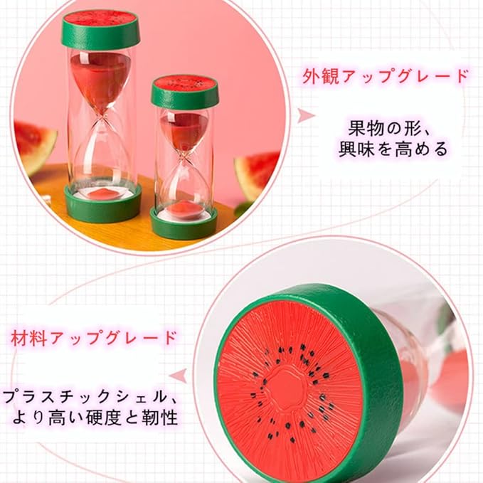 Skrnoai(桜の愛) 砂時計 フルーツの形 サンドタイマー 砂タイマー 3/5/10/15/30/45/60分 タイムマネジメントアシスタント クリエイティブギフト リビングルームオフィスデコレーション かわいい 防水 アナログ時計 卓上 飾り物 プレゼント ホーム キッチン オフィス 装飾品 (15分, スイカ)